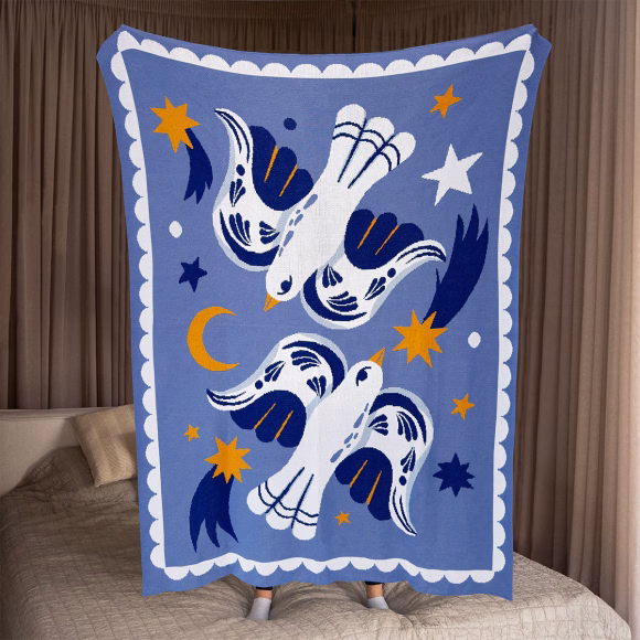 There is a lot of symbolism around the image of birds. Many people still believe that swallows are harbingers of happiness, storks are symbols of family well-being, nightingales are symbols of will! And we would like the "Birds in the starry sky" blanket to become your symbol of peace, coziness and those special moments when the sky is clear, the stars are big, and there is complete silence in the air...