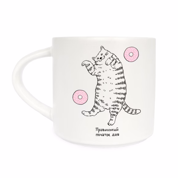 Ищете идеальное дополнение к кухонным посиделкам? Готово! Эта чашка настраивает на каждый «серб» и прибавляет настроения, даже если нет сил, работа достала, а за окном ливень. Магия котика (и пончика) — вот, как мы это называем :)
