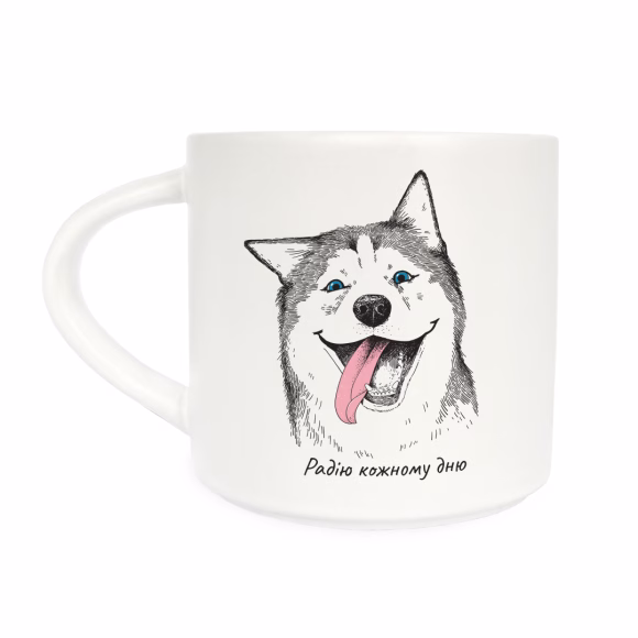 Ищете именно ту, единственную и неповторимую чашку? Поздравляем, вы ее нашли. Счастливый хаски делится радостным вайбом со всеми желающими. А нежелающих завораживает и перетягивает на светлую сторону позитива :)