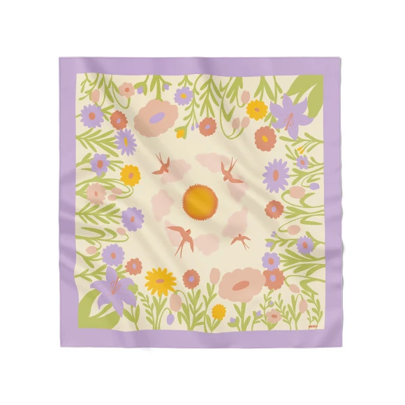 Цветочные мотивы, светлые оттенки и продуманные детали с особым смыслом создают светлое чувство обновления и тепла, поэтому платок прекрасно дополнит образ и станет хорошим подарком себе или кому-то.