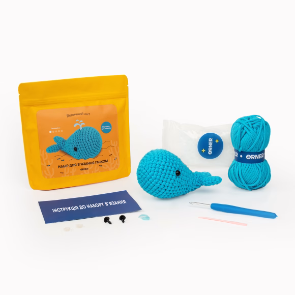 Для удобства в каждом наборе есть все необходимое: пряжа, крючок, маркер для обозначения рядов, пластиковая игла, наполнитель и глаза с безопасным креплением.