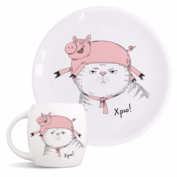 Мы не рекомендуем мыть тарелку и чашку в посудомоечной машине, чтобы не повредить иллюстрацию под воздействием сильных моющих средств