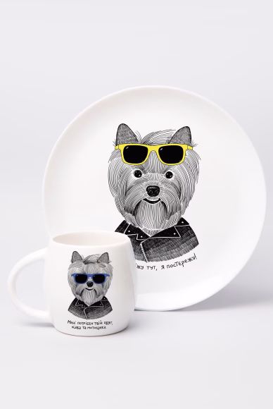 Мы не рекомендуем мыть тарелку и чашку в посудомоечной машине, чтобы не повредить иллюстрацию под воздействием сильных моющих средств