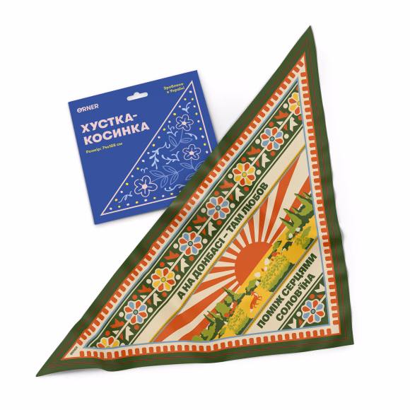 Ця особлива хустка-косинка від бренду ORNER присвячена незламному сходу нашої країни. Вона щомиті зігріває душу красою місцевих пейзажів і промовляє глибокими словами. Аксесуар стане потужним символом віри, стійкості та безмежної любові до своєї землі.