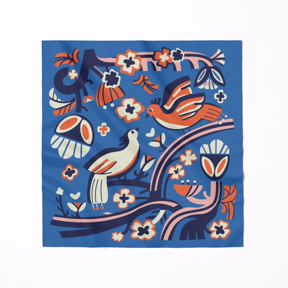 Хустка «Птахи на зоряному небі» блакитна