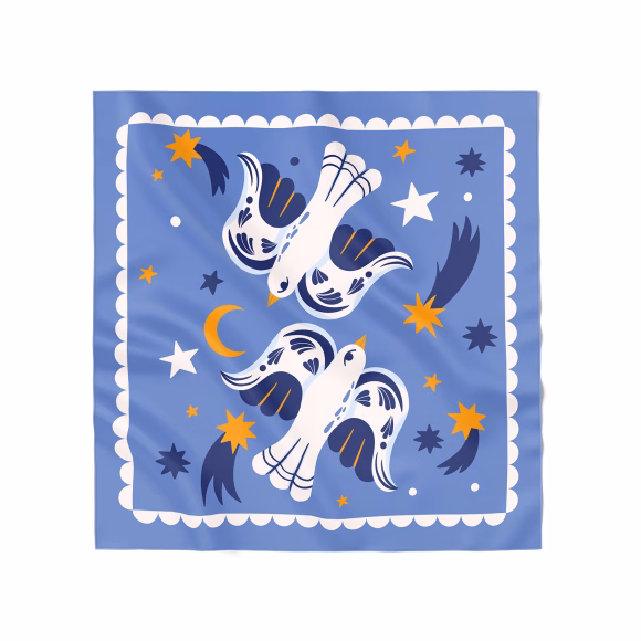 Хустка «Птахи на зоряному небі» блакитна