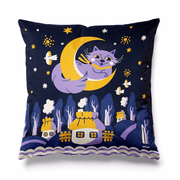 Кожному знайомий образ котика з українських колискових пісень, який відразу занурює у відчуття повної безпеки. Ця подушка від ORNER, як і плед із таким самим дизайном, створена спеціально для того, щоб огортати затишком.